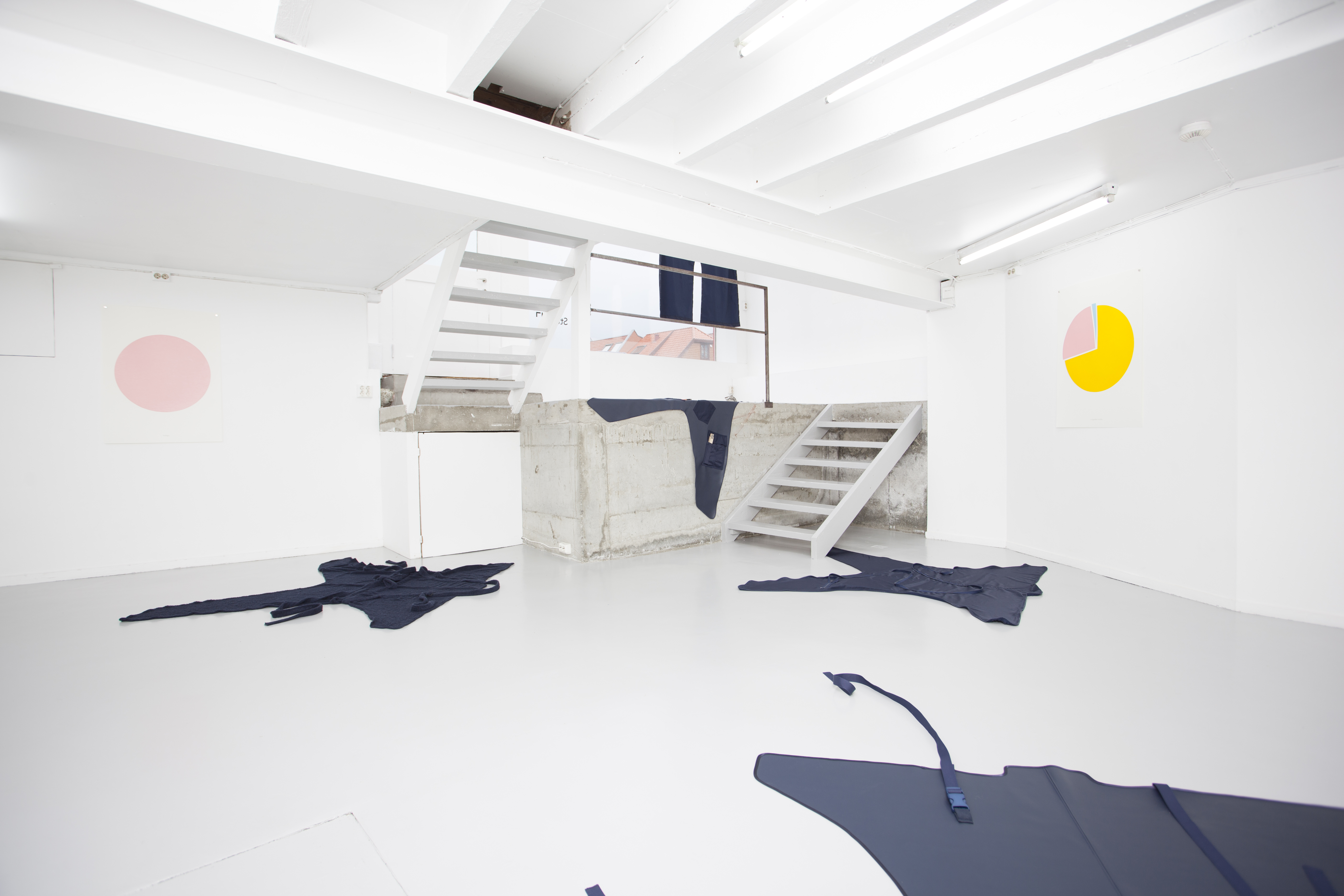 Jeg er ansat i et job hvor jeg er chef var en soloudstilling bygget op omkring en serie af tryk lavet på baggrund af egne statestikker over arbejdstid og omskiftelige funktioner. De blev udstillet sammen med 5 efterladte uniformer efter ham-skifte, alle syet i forskellige materialer (Bævernylon, immiteret skind, bomuld, plast og frotté)